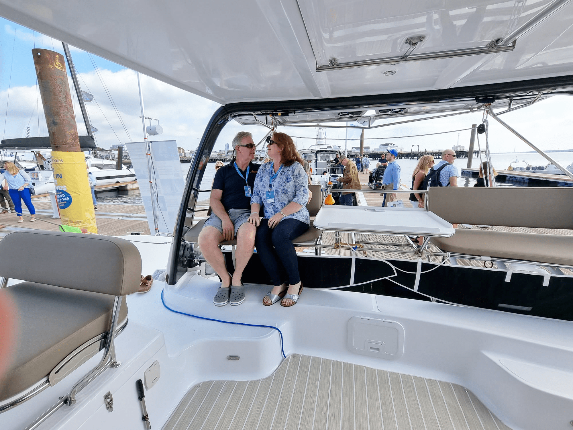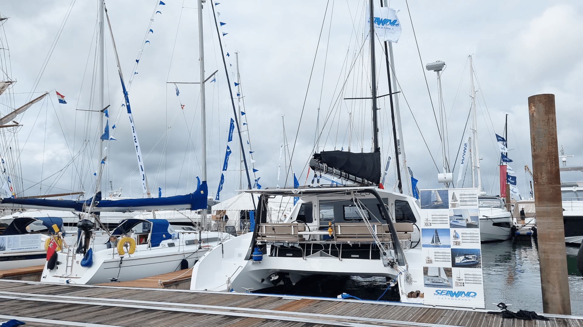 The first week at the show for Seawind has been absolutely amazing. Visitors at our Stand No. M152, Pile 16A, Wet Wheel 3, were immediately thrilled to get onboard the Seawind 1190, to view the exteriors and experience the interiors of the boat. It was easy to spot Seawind thanks to the excellent location with a clear view on the dock.