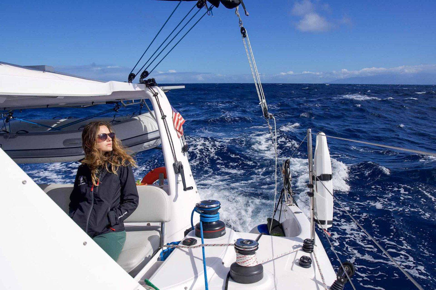 Last selfie before lifting the anchor and leaving for good. We left Canary Islands at 17:00 on Nov 29th 2021.We scraped the barnacles off the hulls in order to squeeze every last bit of “free performance”, and waited on anchor until the wind dies off a little. Winds are blowing at 20kt gusting 25kt just behind our beam.The seas are a bit rough at around 3 meters and we’re sailing on broad reach towards La Palma.We plan to pass La Palma around 6AM on the North side and avoid the volcano ashes as much as possible.After that we’ll keep monitoring weather and sail to W-NW until eventually turning south.#sailingbutters