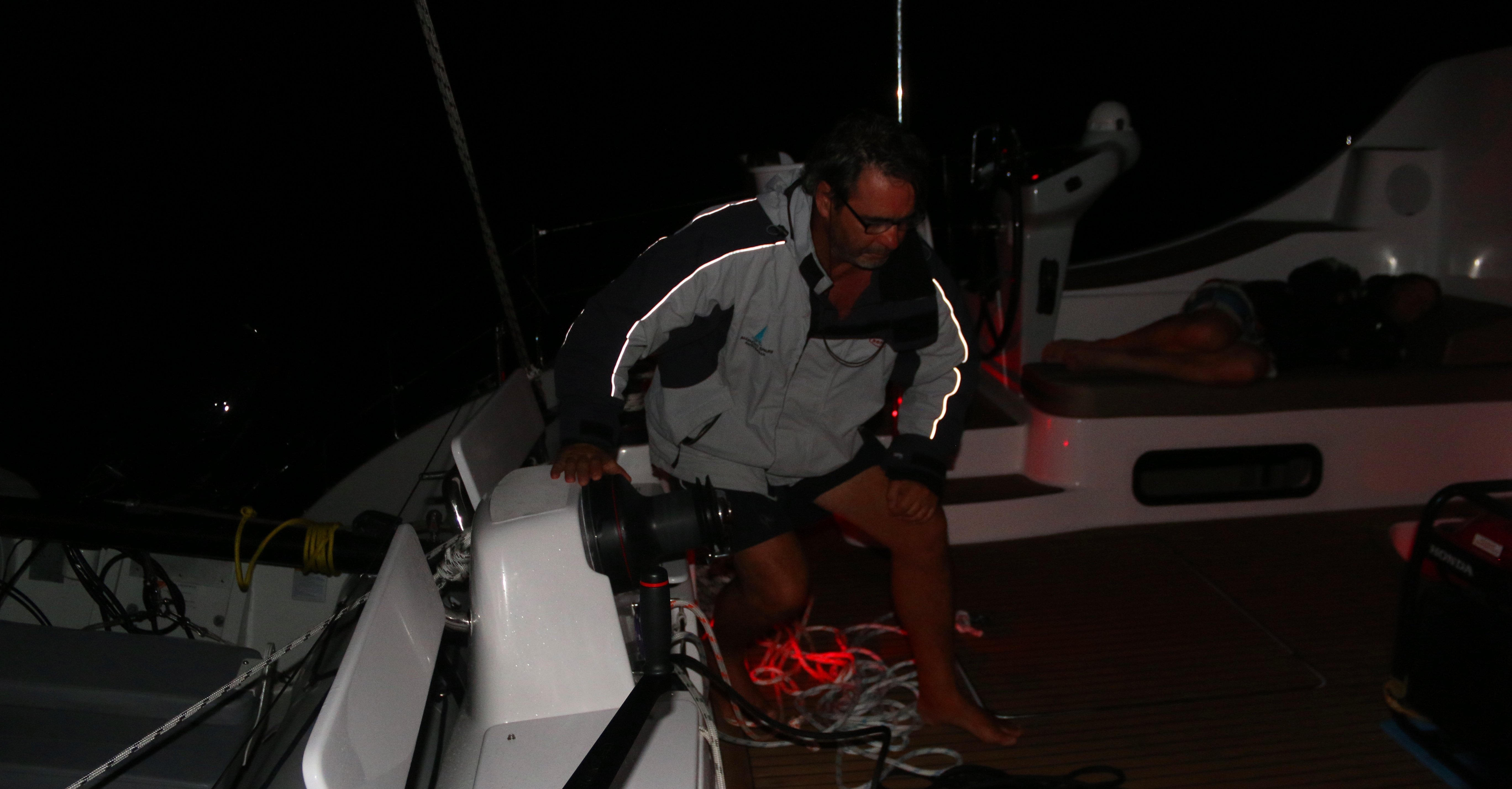 Night sailing was quite straight forward, there were four of us aboard so we took shifts with two people on watch together for 4 hours a time. The nights were typically uneventful, occasionally you would pass a fishing boat and slow down or change course to avoid nets. The further south we went into the Gulf of Thailand, the fewer vessels we encountered. Around 11pm we would put in a reef, just as a precaution to avoid the need in the dead of night but also to provide an easy comfortable ride. The reef lines are all single line and led back to the cockpit so reefing was all managed without needing to head up on deck: a truly under-appreciated feature.
