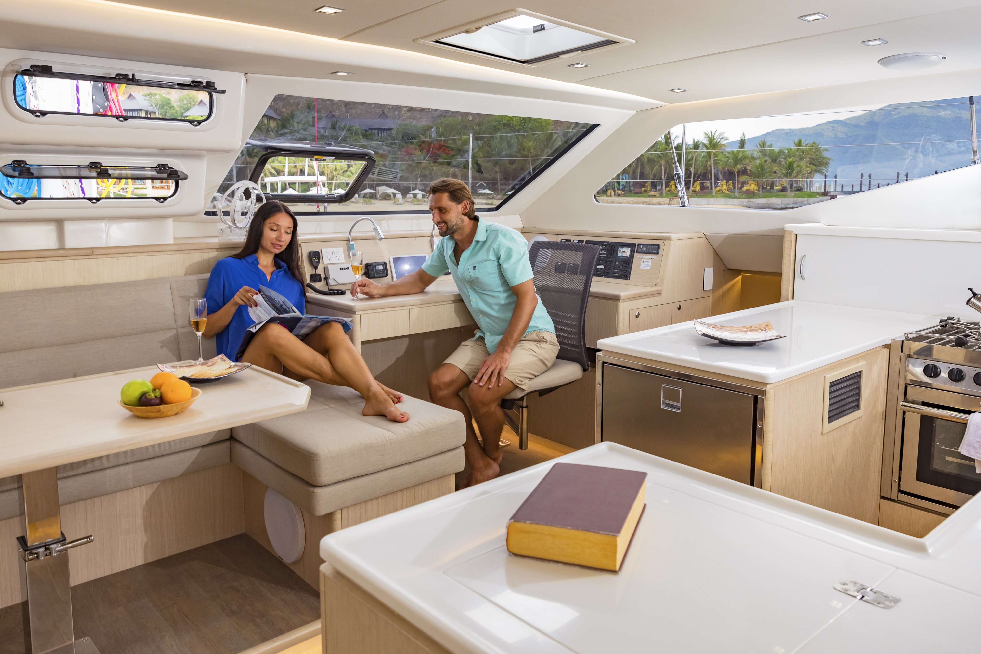 A decisive choice was made early to put sailing performance before pure volume, which is not the case of many modern catamaran designs. The benefits of this are multitude and include having a great sailing motion while under way, that you get to your destination faster and don’t become frustrated by the lag of performance after days at sea in light winds, and that volume isn’t added at the expense of robustness.  Add to that our scrupulously considered interior – without a square millimetre of wasted space, and with all of the amenities required for a long passage, and this truly is performance cruising.