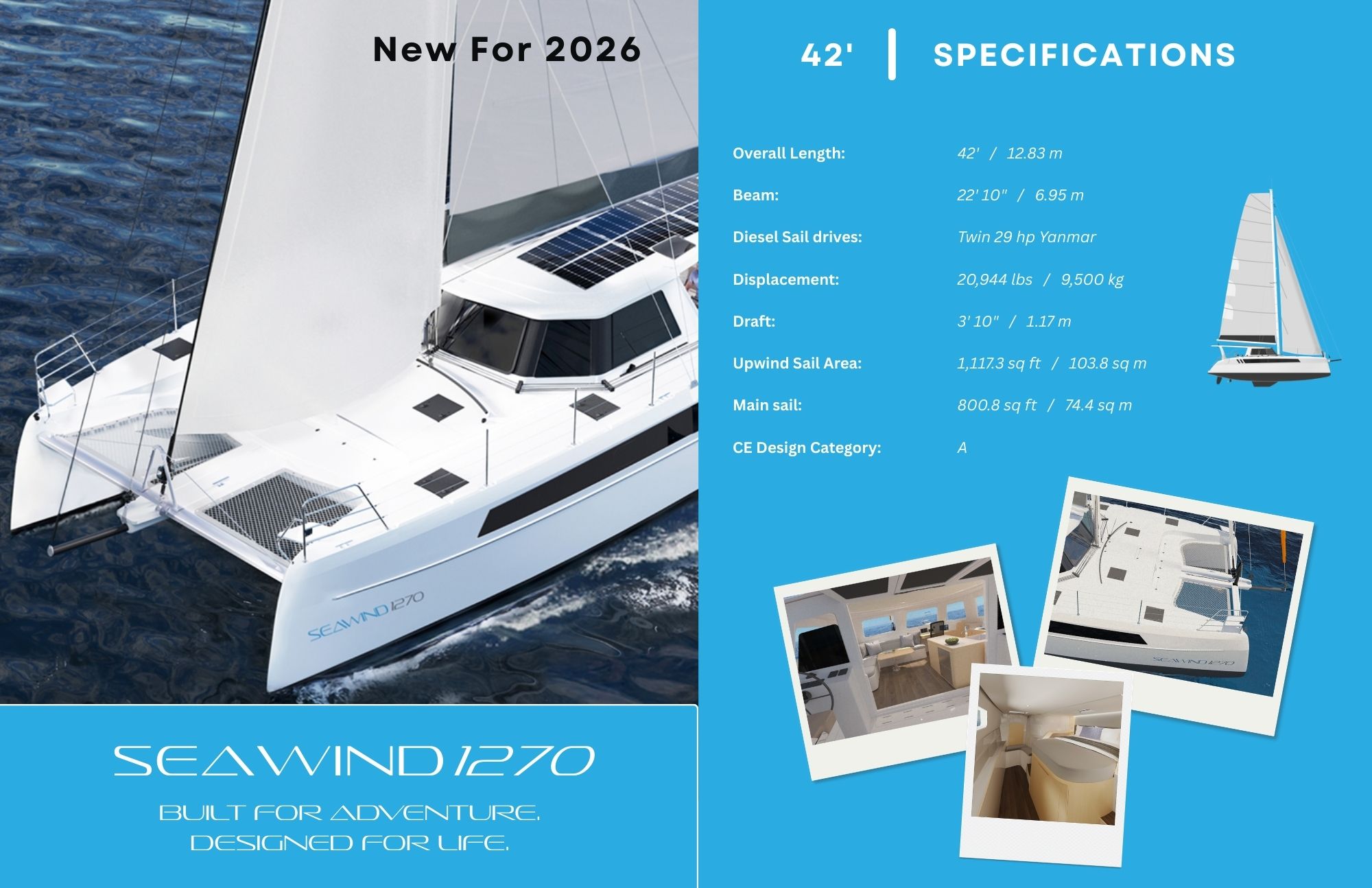 - Seawind 1270 decals on each hull and stern.